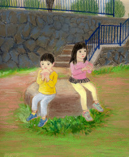 色鉛筆、オイルパステル、不透明水彩絵の具